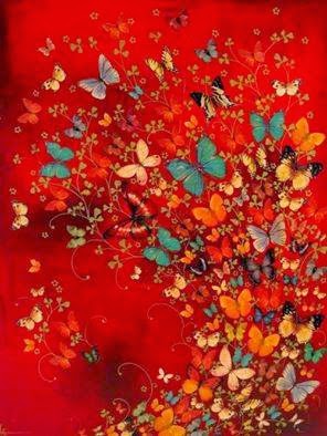 El 26 de febrero, luego de casi 3 horas de cirugía, salí de la anestesia con una imagen muy parecida a esta, pero sobre un fondo celeste.  Traté de explicársela a la enfermera. Sonrió. No te apoyés, me dijo. Tenés que estar de costado. 48 puntos. Sonreí. Yo dí las gracias a la Poesía por haber despertado con mariposas.