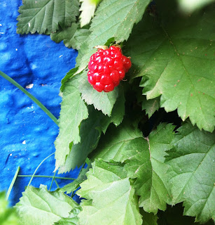 ¿La maravilla va a volverse roja en unos días? (primera frambuesa en mi jardín).